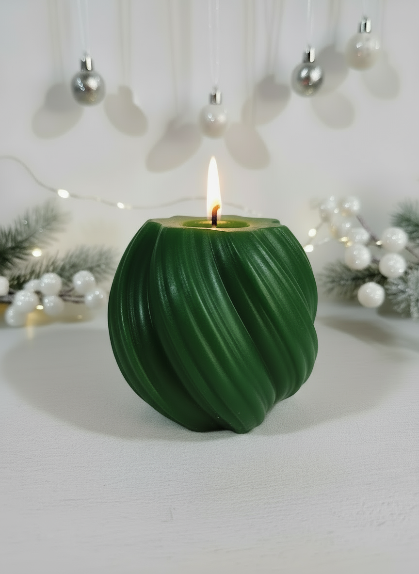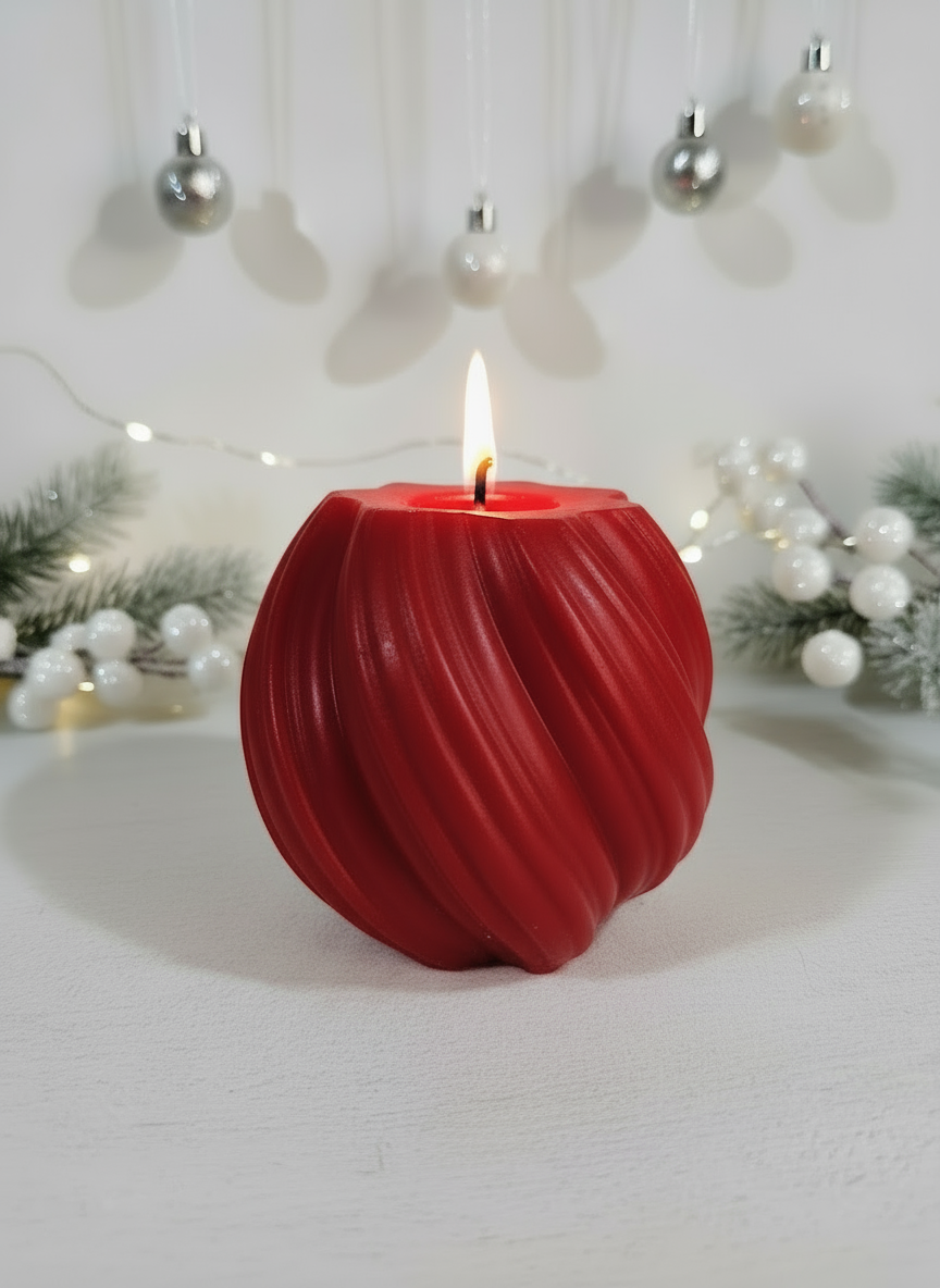 Con sus tonos inspirados en la clásica Navidad, esta vela transforma cualquier rincón en un espacio acogedor y festivo. Su forma perfectamente redondeada y su brillo suave crean una atmósfera envolvente, perfecta para acompañar cenas, momentos de calma o noches de celebración.